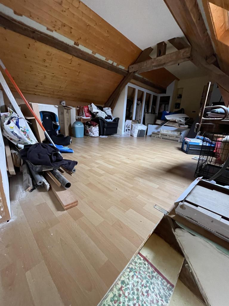 A l'étage : hall de nuit, salle de douches, une grande chambre avec spacieux dressing ( possible 2 chambres ) et accès vers le grenier aménagé en chambre supplémentaire.