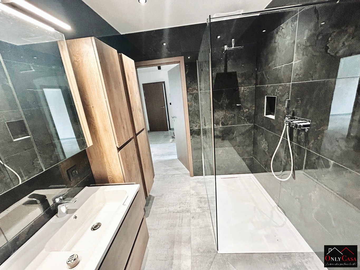 Le bien se compose comme suit: Hall d'entrée, Wc séparé, spacieuse buanderie, grand espace de vie avec salon, salle à manger, cuisine full équipée, 2 chambres, magnifique salle de douche avec wc.