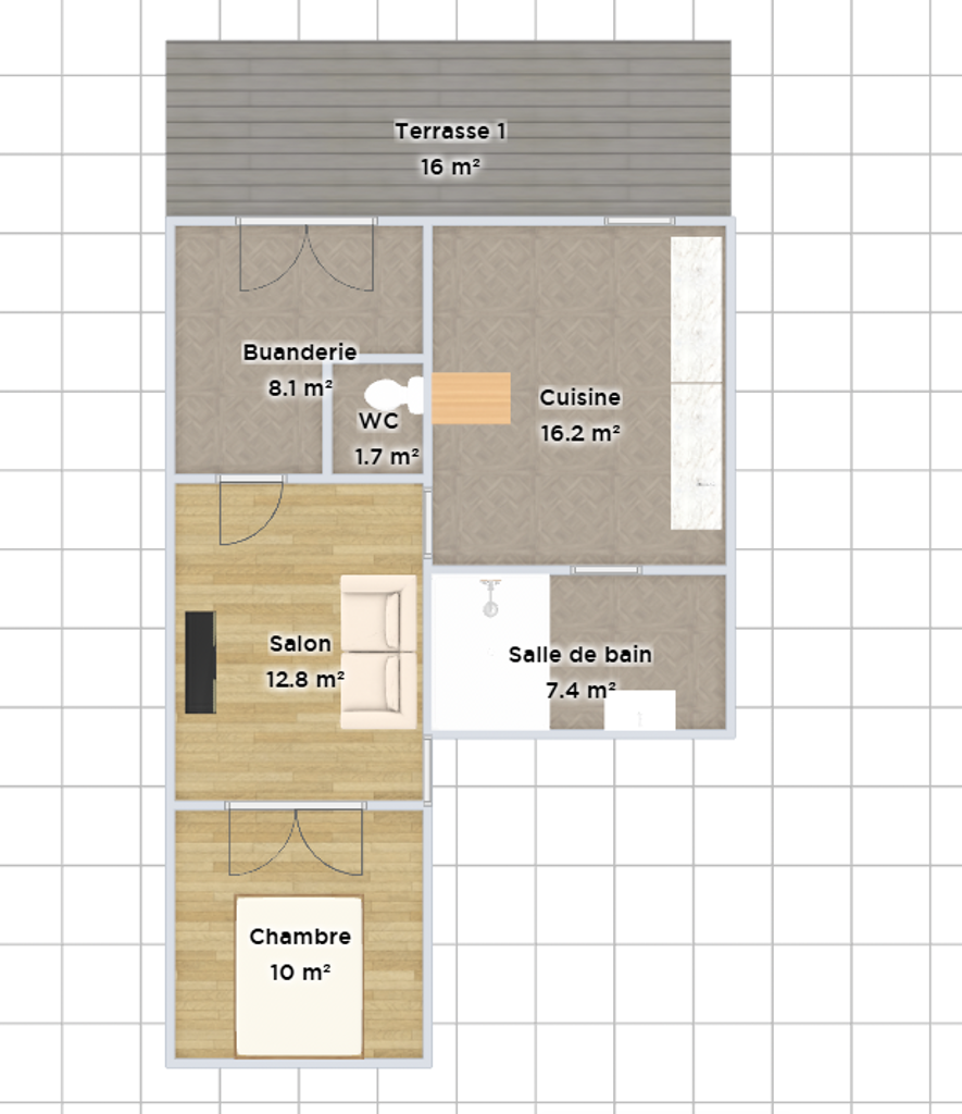 - Au deuxième étage un duplex de 96 m2 composé d'un living, cuisine, 2 chambre et une salle de bains. Actuellement loué