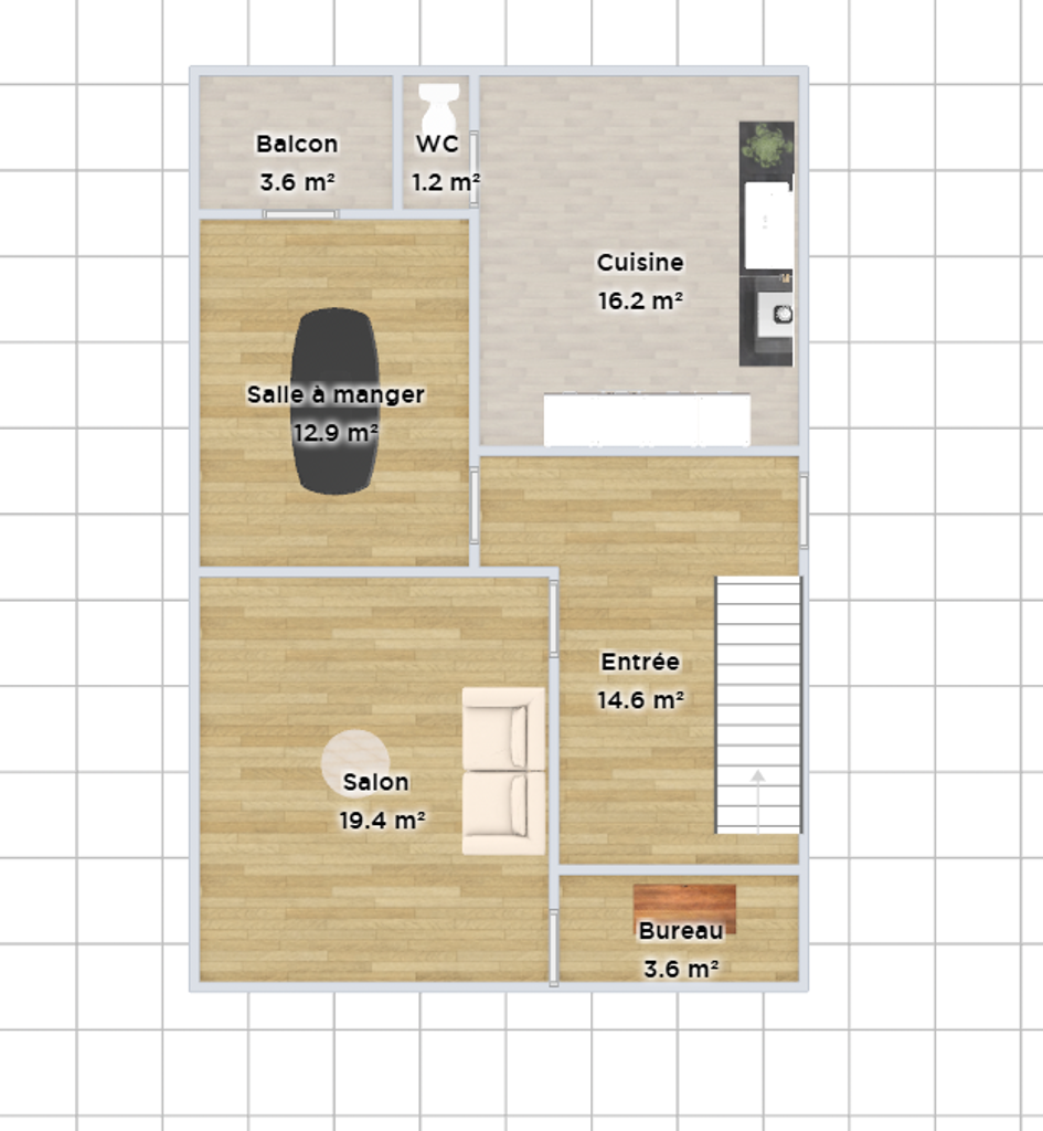 - Au premier étage un appartement de 59 m2 composé d'un living, cuisine, une chambre et une salle de bains. Actuellement loué