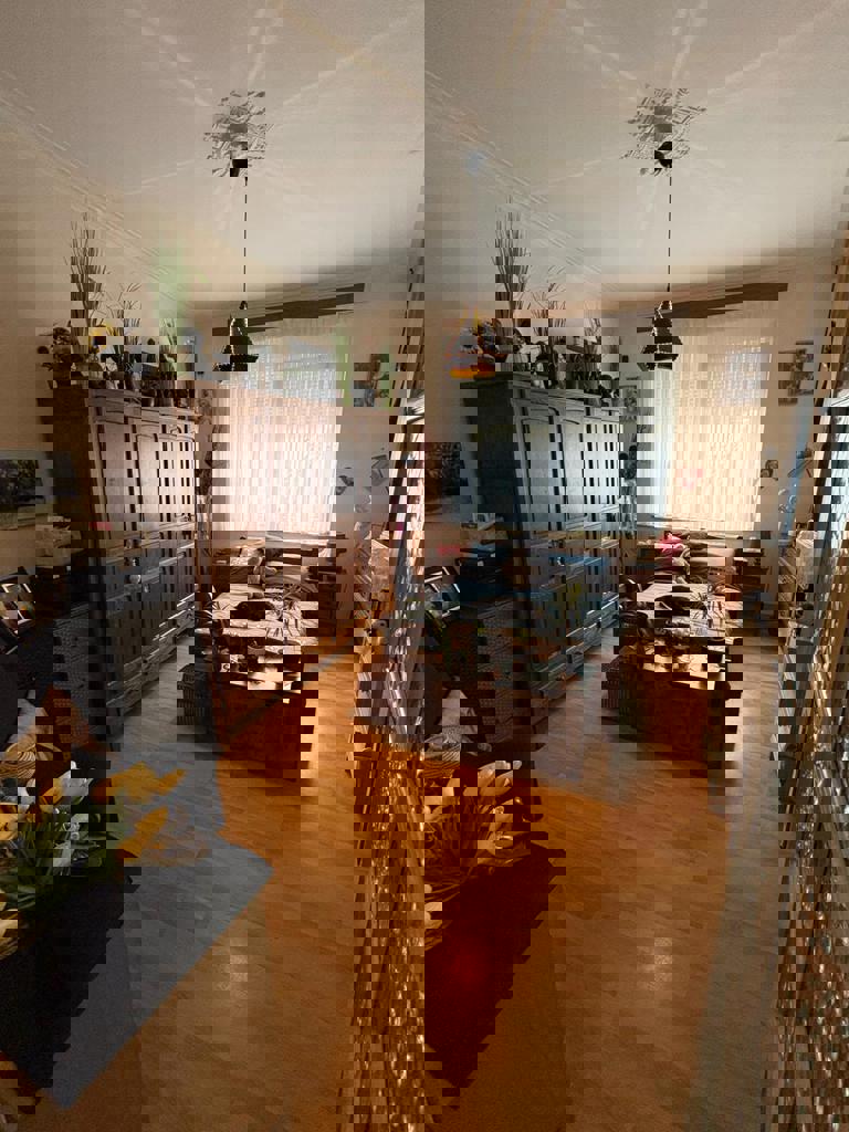 - Au rez de chaussée un appartement de 51m2 composé d'un living, cuisine, une chambre, une salle de bains et une petite cours. Actuellement loué