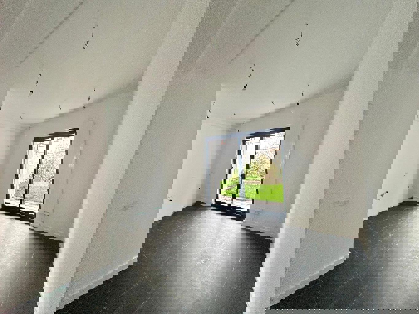 Elle est composée comme suit, au rez-de-chaussée: hall d'entrée, WC séparé, salon, salle à manger ainsi qu'un espace pouvant accueillir la cuisine de votre choix ouverte sur le séjour.