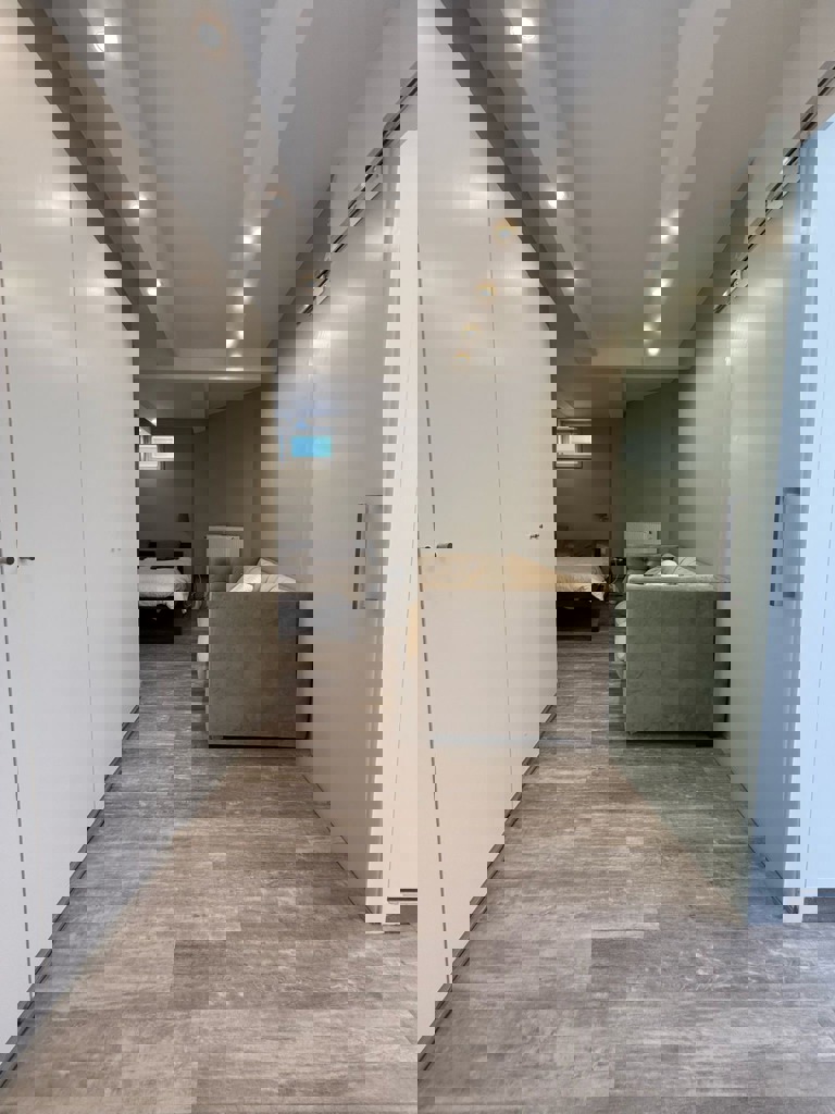 Ce duplex est composé d'un garage de 2 voiture en enfilades, un hall d'entrée, une chambre, un dressing, une salle de bain, une grande cuisine équipée, un spacieux living et un espace extérieur.