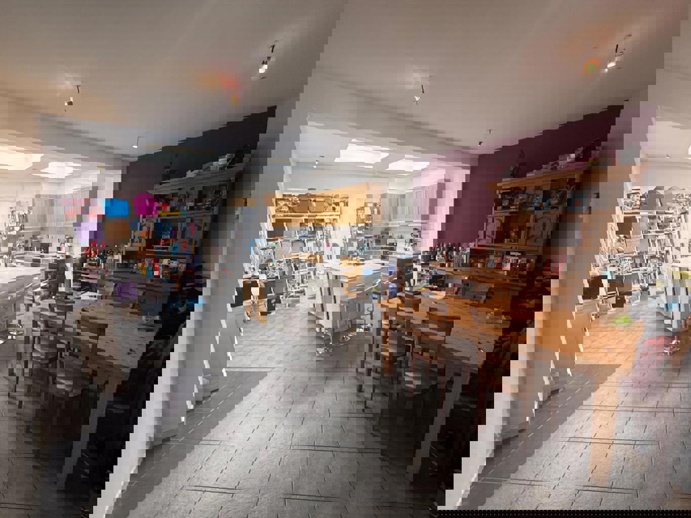 Hall d'entrée, salon, salle à manger, cuisine équipée avec îlot central, un WC séparé et une salle de bains.