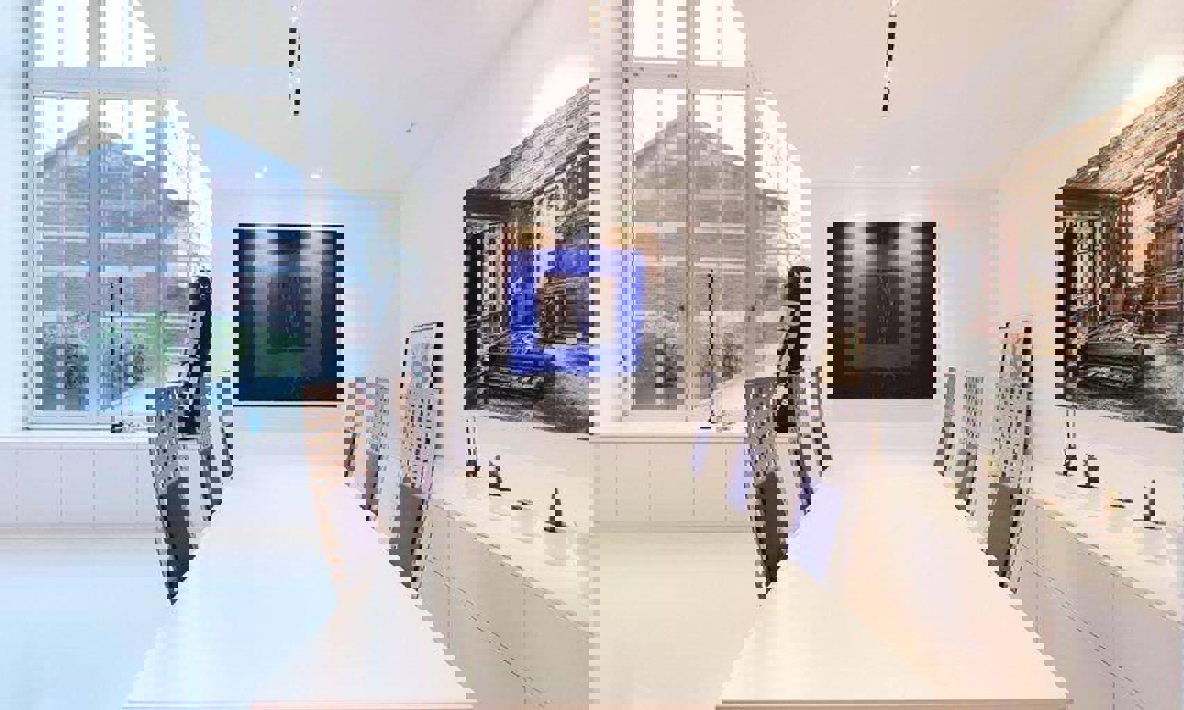 - Au rez-de-chaussée : Hall d'entrée, spacieux séjour très lumineux avec feu ouvert et bibliothèque encastré, cuisine américaine, salle à manger et buanderie.